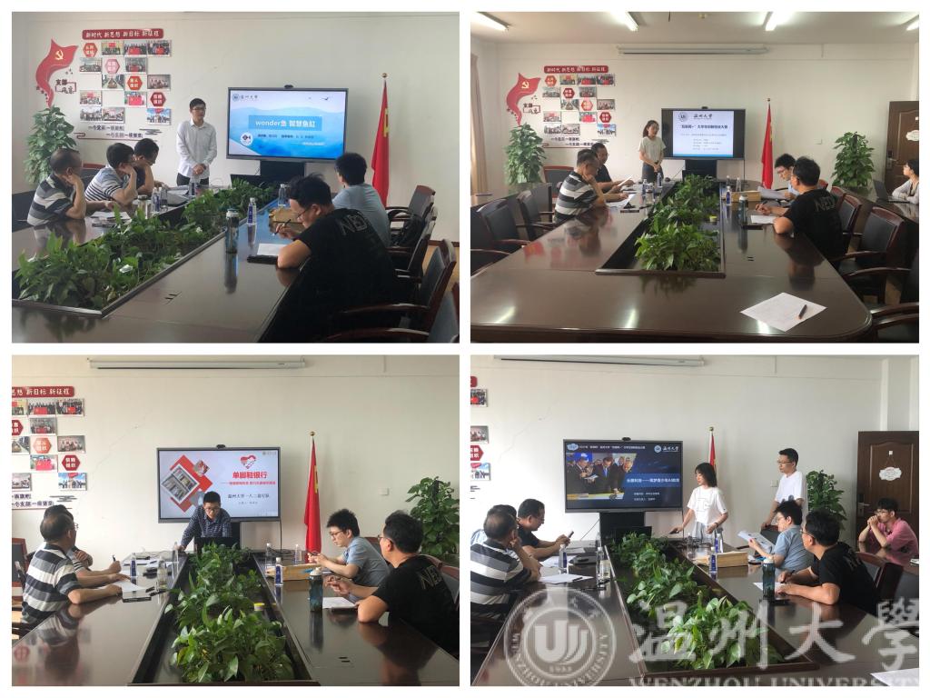 结合学校《关于组织开展2021年“新湖杯”3044永利集团“互联网+”老员工创新创业大赛的通知》,学院于2021年05月12日下午,1A512会议室举办了2021年“互联网+”老员工创新创业大赛。本次评审由李理敏、庄友谊、钱祥忠、吴自然、王环老师共同担任评委。此次活动,共有八支队伍参与评比,经项目组成员陈述与答辩,评委提问与审议,共6只队伍推荐学校。