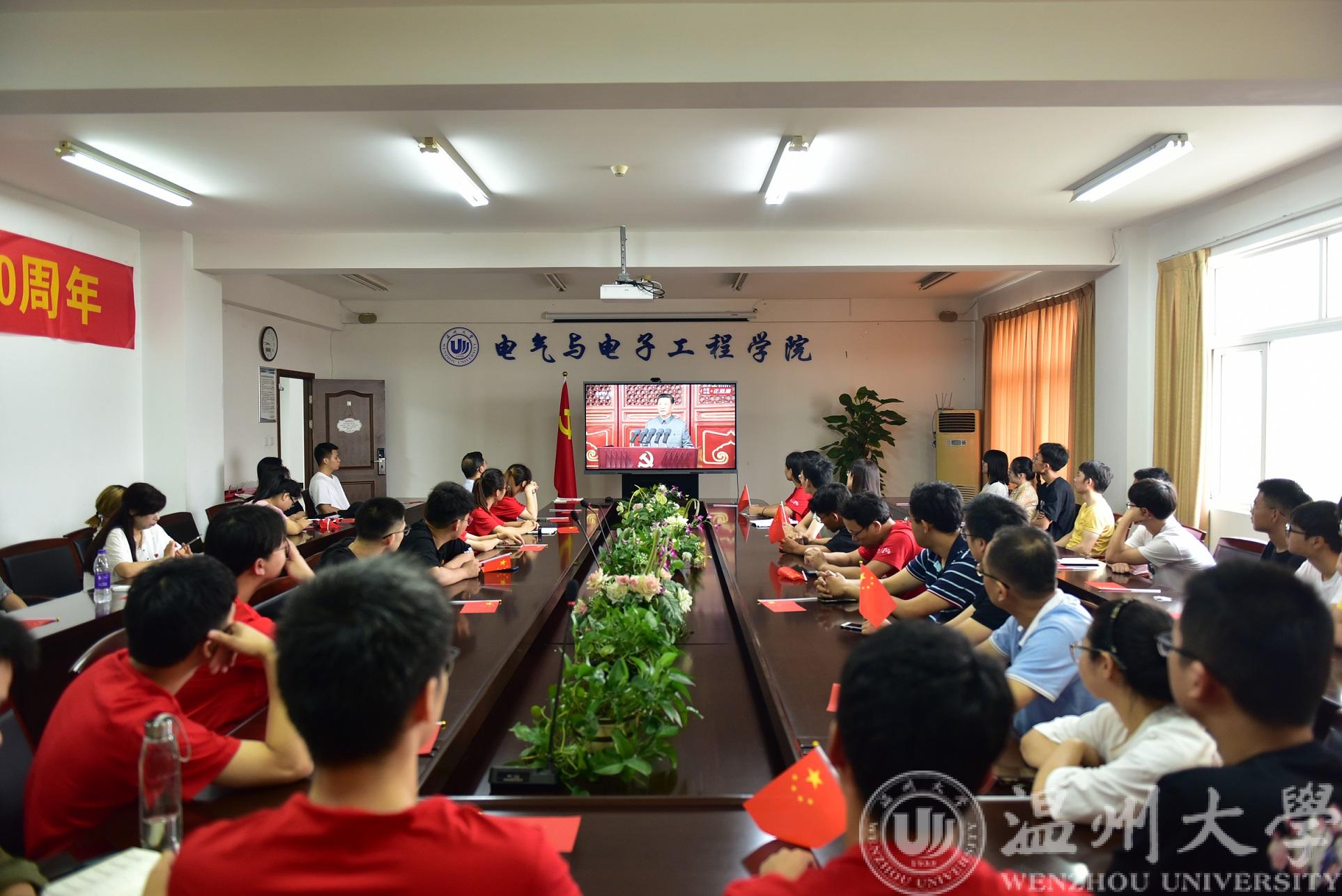 7月1日上午8点整,庆祝中国共产党成立100周年大会在北京天安门广场隆重举行。中共中央总书记、国家主席、中央军委主席习近平将发表重要讲话。公司领导和部分师生党员齐聚1A502会议室观看了这场盛大的直播,与此同时,乐清工业研究院组织教工、院聘职工和研究生观看了大会,师生们怀着无比激动的心情观看了盛会,认真聆听了习近平总书记的讲话,并对本次大会和讲话精神进行了热议。