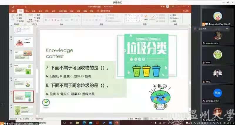 2021年7月19日上午10:00,绿芽暑期社会实践队在线上给小朋友们开展了垃圾分类知识竞赛的实践活动。本次活动由绿芽暑期社会实践队负责活动的策划和具体安排,实践队的全体成员参与了此次活动。