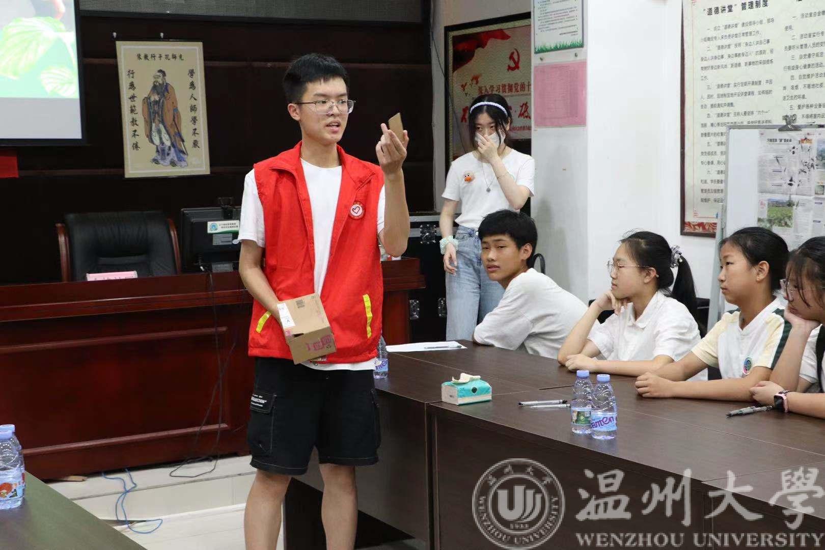 夏日炎炎,关怀暖暖!7月14日下午,公司党委副书记曾蓓蕾和绿芽实践队指导老师潘龙飞、学工办辅导员丁佳洁老师一行,前往温州新桥街道金蟾社区看公司绿芽暑期社会实践队队员。