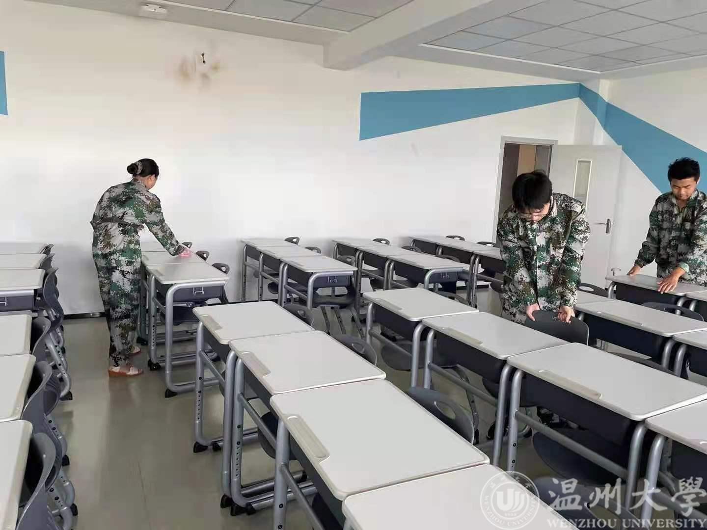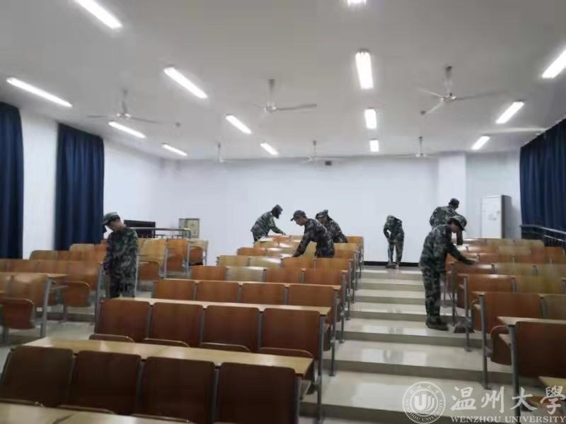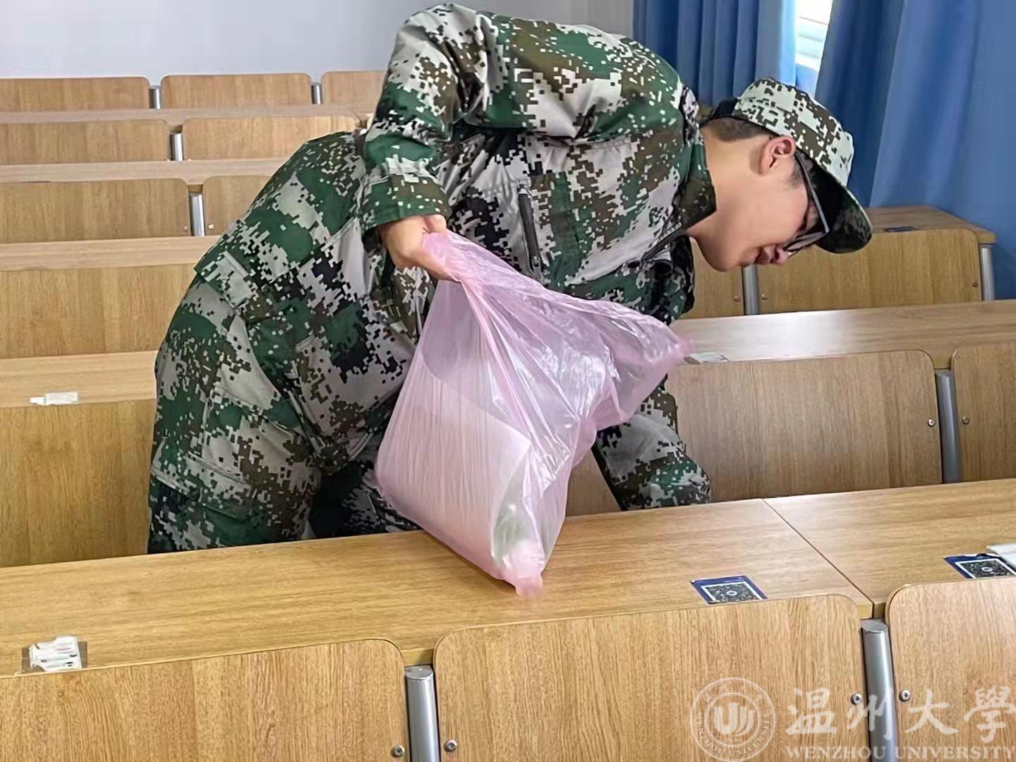 上午8:00,2021级军训的新生们统一穿上军训服,各自带着扫把、畚箕、抹布等清洁工具,早早地来到了公司办公楼。在班长的组织下,各位新生严格遵守纪律,有序地进行学院公共区域卫生清理、自行车摆放、教室卫生清理等活动。为不影响公共场地的正常使用,同学们必须争分夺秒,早点完成;同时做到保持安静,不影响正在上课的老师和同学。同学们辛劳打扫的身影遍布整个学院。新生们不仅将汗水挥洒在训练场上,也留在了学院的每个角落。