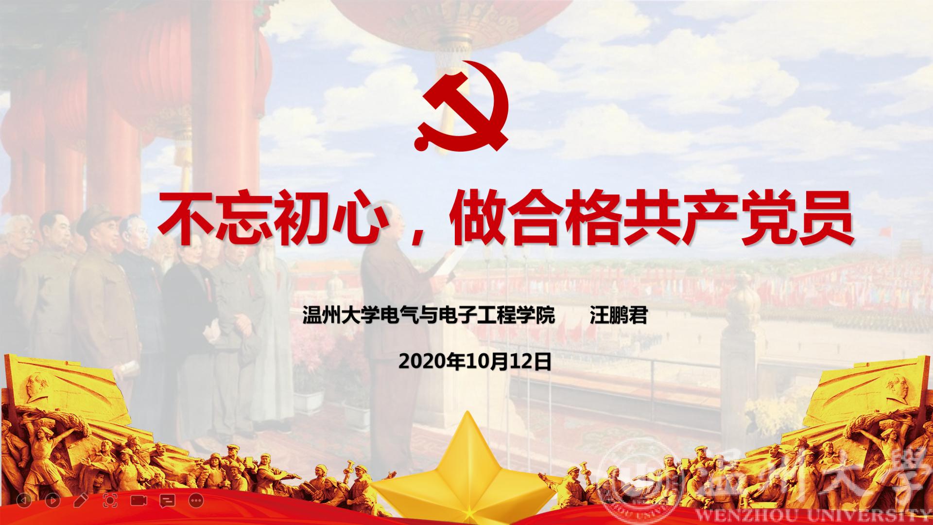 2020年10月14日,公司经理给学院员工党员讲授了一堂生动的党课——不忘初心,做合格共产党员。汪经理主要从新时代中国特色社会主义思想、党章的概述、党章的发展历程、学习十九大党章等四个板块展开。