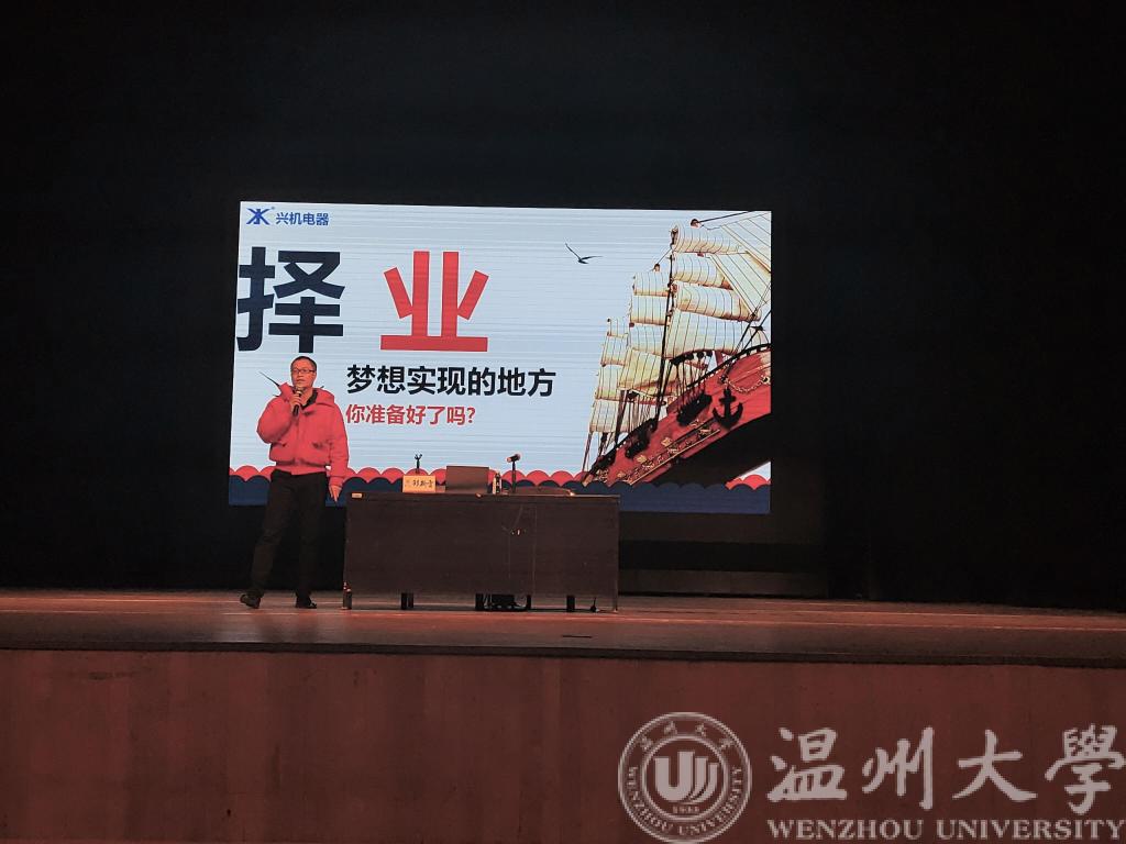 紧接着,由兴机电器公司的人事部负责人邵新雷老师带来了他关于择业和老员工职业规划的讲座。关于择业时“去哪里工作这个问题?”,邵新雷老师就天时、地利、人和三方面进行分析,“大型企业看文化,中型企业看行业,小型企业看老板”的原则,从行业前景、当下需求、企业状况、交通情况、离家路程等方面给员工提出了参考建议。