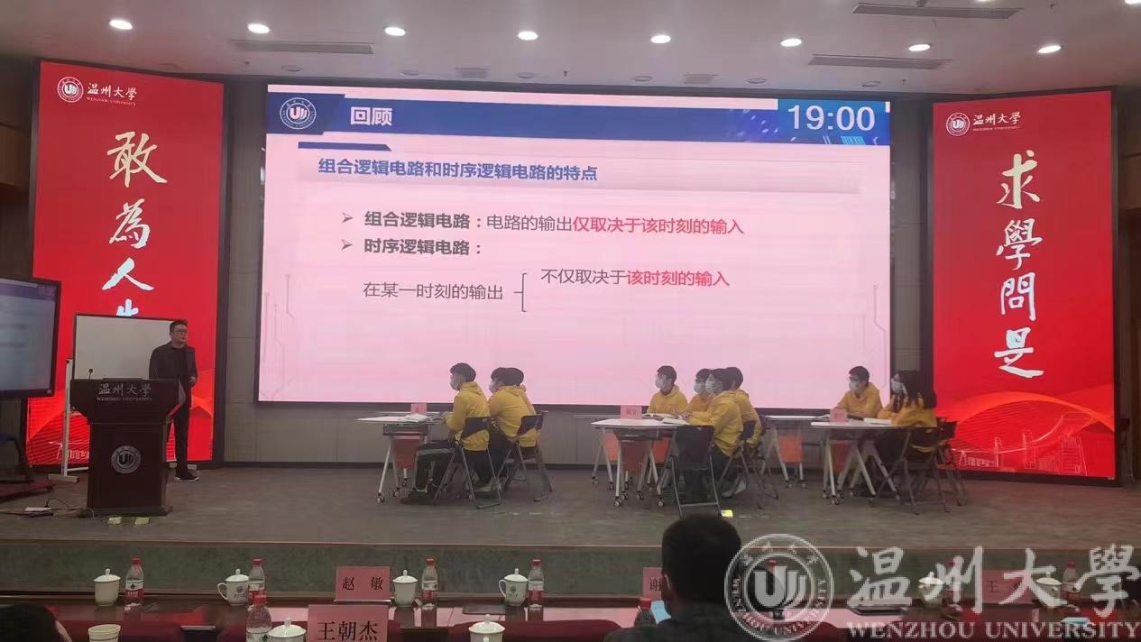 陈老师本次教师课堂教学竞赛讲授的是《数字电子技术》中半导体存储电路的相关章节,通过组合逻辑电路和时序逻辑电路的特点以及全球集成电路产业的现状作为导入,分析了基本SR锁存器的电路结构和工作原理,结合锁存器的实际应用和教师的科研成果,同时采用多样化的教学工具和教学手段,引导员工步步深入。教学过程中体现了课程的高阶性和创新性,且具备一定的挑战度,取得了良好的效果。