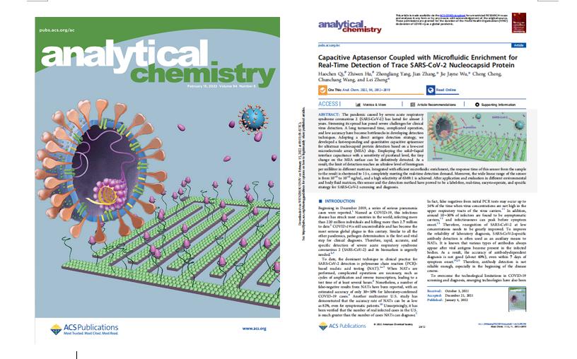近日,公司3044永利集团张鉴教授课题组以“Capacitive Aptasensor Coupled with Microfluidic Enrichment for Real-Time Detection of Trace SARS-CoV‑2 Nucleocapsid Protein”为题在《Analytical Chemistry》发表研究论文,并被期刊选为supplementary cover亮点报道。