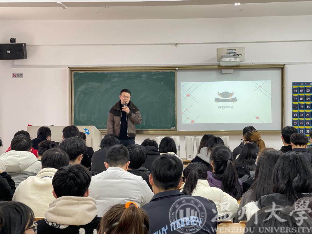 年级辅导员潘龙飞老师希望考研学子们能够珍惜学院提供的良好的学习环境,珍惜周围一起奋斗的小伙伴;考研不是人生的最终目的,希望大家能够珍惜奋斗的机会,努力拼搏。陈海彤老师就备考的关键因素和考研自习室的纪律进行讲解,希望同学们能够怀着爱国之心、感恩之心学习,树立远大理想,“在足够年轻的时候,体会一次全力以赴”。