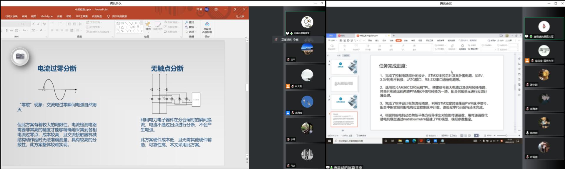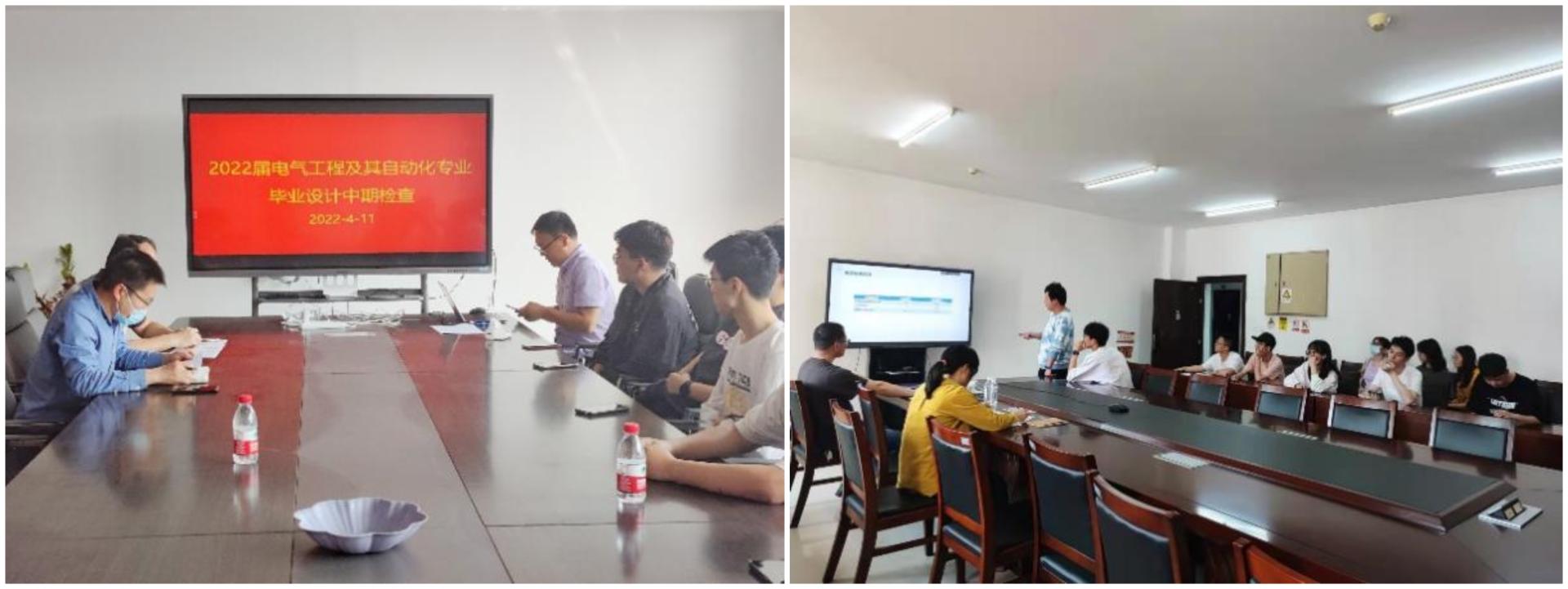 为加强对毕业设计的指导和管理,及时了解毕业设计进度和存在的问题,增强毕业设计指导的针对性和有效性,提高毕业生毕业设计水平。4月9日-4月12日,电气工程系对全体 2022届电气工程及其自动化专业本科生毕业设计(论文)进行中期检查,95 名同学分为8 个小组、线上与线下相结合进行中期汇报,主要汇报毕业设计任务和目前进度。