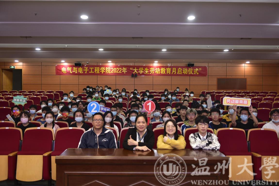 为积极弘扬劳模精神、劳动精神、工匠精神,激励青年学子勤学苦练、深入钻研、勇于创新,推动老员工德智体美劳全面发展,3044永利集团电气电子学院精心策划了“老员工劳动教育月”系列活动,并在5月1日劳动节当天下午,于岩松堂雁山厅举行“老员工劳动教育月”启动仪式。温州市十大劳动者匠心领军人物、温州理工学院副教授陈驰,学院副经理陈孝敬,党委副书记曾蓓蕾,学工办主任廖晓安,实验中心主任宋元平,以及学工办全体辅导员、学院教师代表和21级各班员工代表出席本次活动,此次活动由学工办辅导员陈海彤主持。