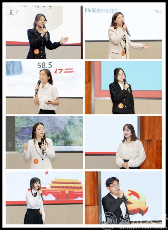 员工组率先开讲。同学们围绕“永恒的丰碑”“浙江精神凝众心,时代华章共谱写”“庚续红色血脉,踔厉奋发向未来”“战地黄花分外香”“颂中国力量,展青春担当”“理想之光,永续传承”等主题,讲述了革命先烈、垦荒者、创业者、战疫者等不同人群的感人故事,砥砺新时代青年仰望星空,脚踏实地,深刻铭记党的百年奋斗历程,坚定传承守护党的红色根脉,继往开来共筑新时代华美篇章。