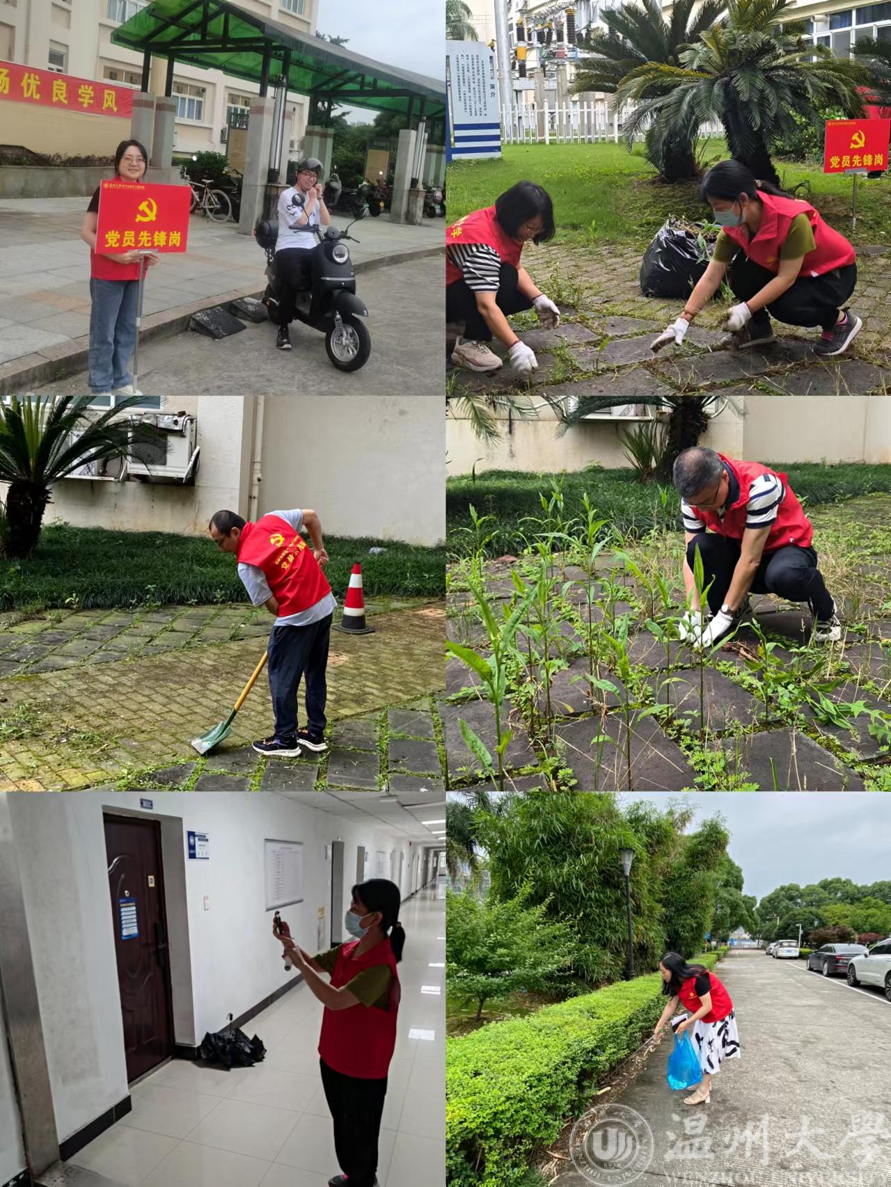 通知指出,“各基层党支部要结合工作实际,组织发动支部党员走到第一线、沉到最基层,集中开展‘环境大整治、行为大示范、岗位大认领、秩序大维护、政策大宣讲’等五大专项行动。”学院积极响应,组织师生党支部率先参与。研究生第二党支部针对学校“产教融合”孵化园区内的卫生、安全问题进行专项清理,包括园区消毒、舍楼小广告、地面口香糖等;学院智能锁具研究公司党支部安排党员志愿者有序分工,带好卫生用具走上街头,重点对道路垃圾、杂物等逐一清理,对墙面广告、卫生死角进行彻底清扫;电子系教工党支部全体党员则是带着卫生工具攀登大罗山,一路清理大罗山上的垃圾,保护温州城市绿肺。