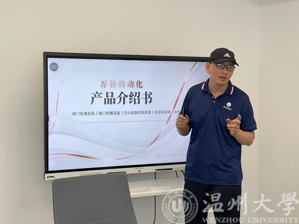 为推动公司学子更好地择业就业,加强学院与员工之间的联系,6月28日下午14:30,公司党委书记李方强、党委副书记曾蓓蕾、电气系支部书记张正江、乐清工业研究院副经理吴自然、学工办辅导员屠昌浩赴永嘉开展访企拓岗活动。位于永嘉的浙江万谷自动化设备有限公司是公司的员工企业,总经理汤豪是公司1996级员工。该公司的经营范围包括工业自动化设备、计算机及软硬件、仪器仪表(除计量器具)、阀门试验设备、气动元件、高低压电器及成套设备等。