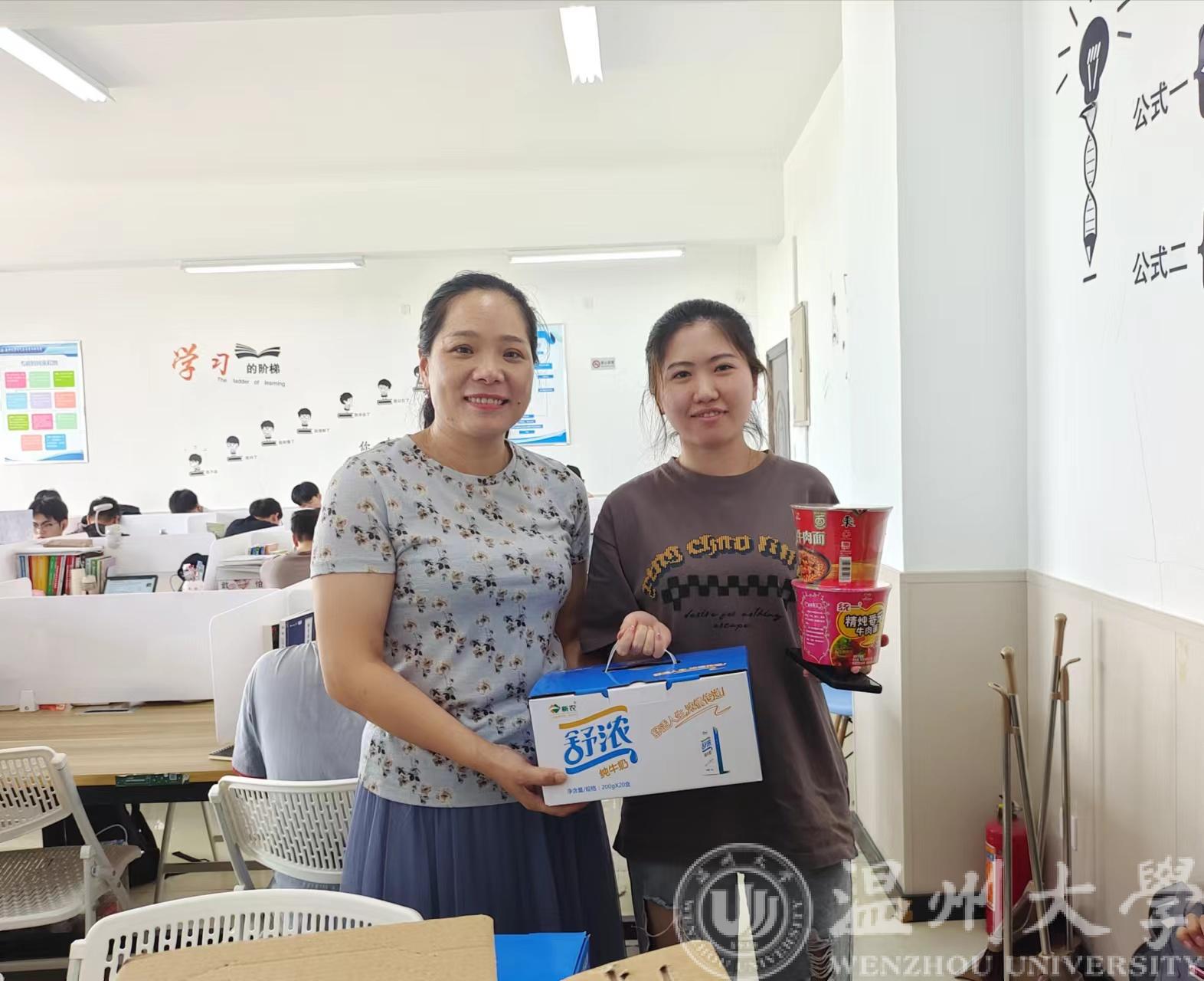 夏日炎炎,骄阳似火。暑期两个月是考研学子备考的关键阶段。为缓解考研学子学习压力,增强考研信心,7月5日上午公司党委副书记曾蓓蕾、辅导员潘龙飞、陈海彤到学院考研自习室走访慰问暑期考研留校员工,并分发暑期考研慰问品。