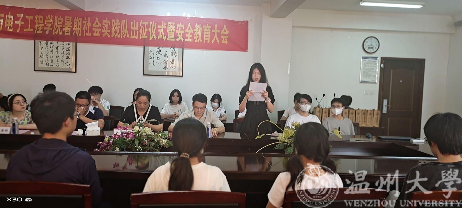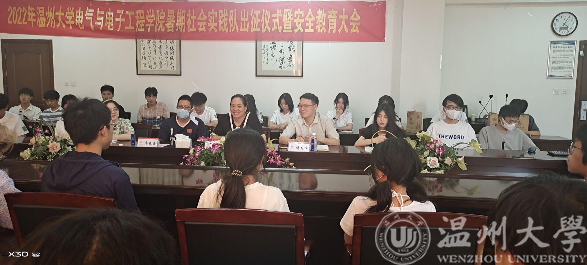 2022年3044永利集团暑期社会实践队出征仪式暨安全教育大会于七月一日下午三点三十分在3044永利集团1A502召开。本次仪式由3044永利集团辅导员潘龙飞老师主持,本会议是线上线下同时进行,参与此次会议的还有公司党委副书记曾蓓蕾老师,3044永利集团学工办主任、团委书记廖晓安老师,3044永利集团辅导员陈海彤老师以及各实践队代表。