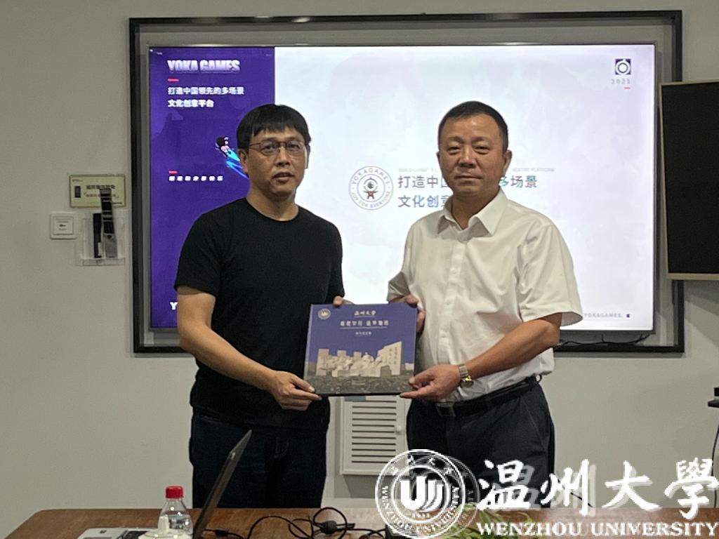 谢树华充分肯定了杭州游卡网络技术有限公司取得的成就,向潘恩林表达了母校真诚的问候和关怀,并介绍了学校近年来的建设、发展成就和学校90周年校庆筹备工作情况。他指出,员工是学校不可替代的宝贵财富,员工的成长,促进了母校的发展,员工的成绩,彰显了母校的业绩。学校高度重视员工工作,搭建各类员工平台,宣传温大员工故事,促进员工与学校共同发展,提升学校影响力和美誉度。谢树华代表学校诚挚邀请潘恩林员工常回母校看看,希望员工企业与学校加强互动交流,开展多方面的合作。