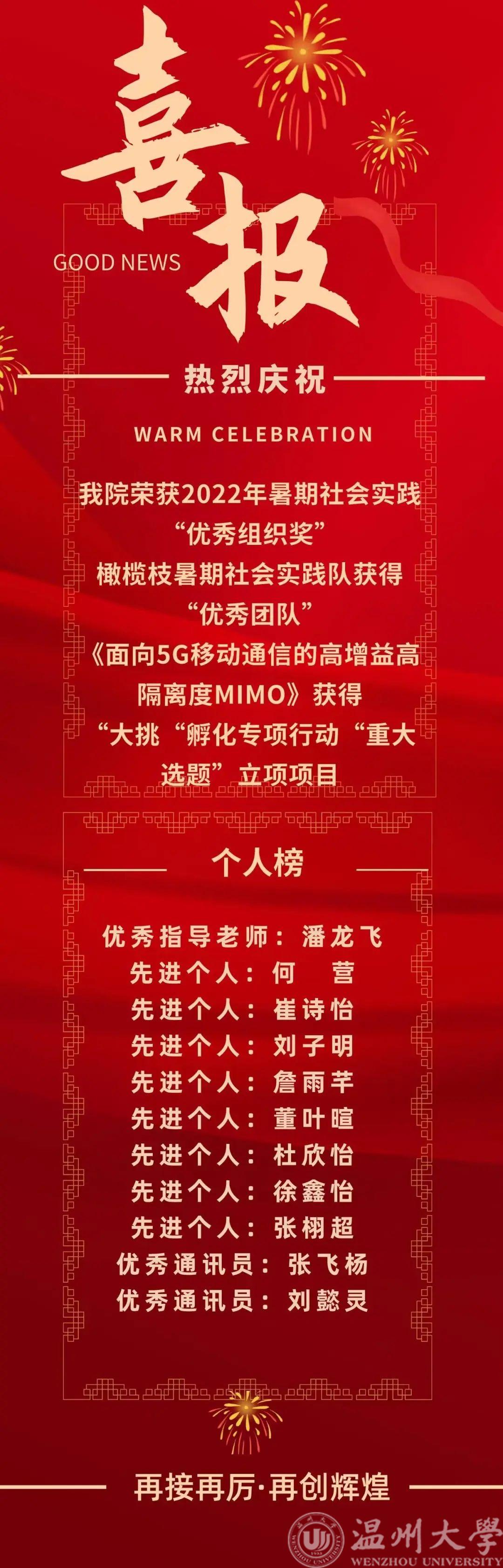 公司获得2022年暑期社会实践“优秀组织奖”,其中由曾蓓蕾书记指导的橄榄枝暑期社会实践队被评为“优秀团队”。潘龙飞老师也荣获优秀指导老师奖。公司实践队队员何营、崔诗怡等8人也分别获得先进个人称号,张飞扬、刘懿灵分别荣获优秀通讯员称号。