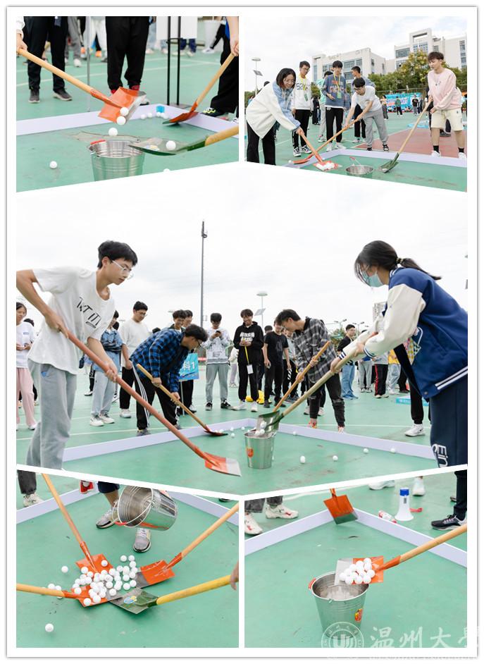 “整地插秧忙有序,欢歌笑语乐无穷”。率先开始的是整地大比拼和插秧小能手环节。师生们小心翼翼地把持平衡,一不小心乒乓球就会从铁锹头“溜出”。