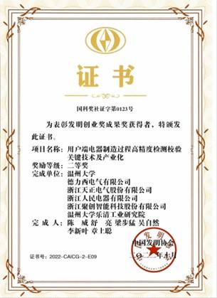 由公司陈威、舒亮、梁步猛、吴自然、章上聪等老师完成的“用户端电器制造过程高精度检测校验关键技术及产业化”项目获2022年度发明创业奖•成果奖二等奖。