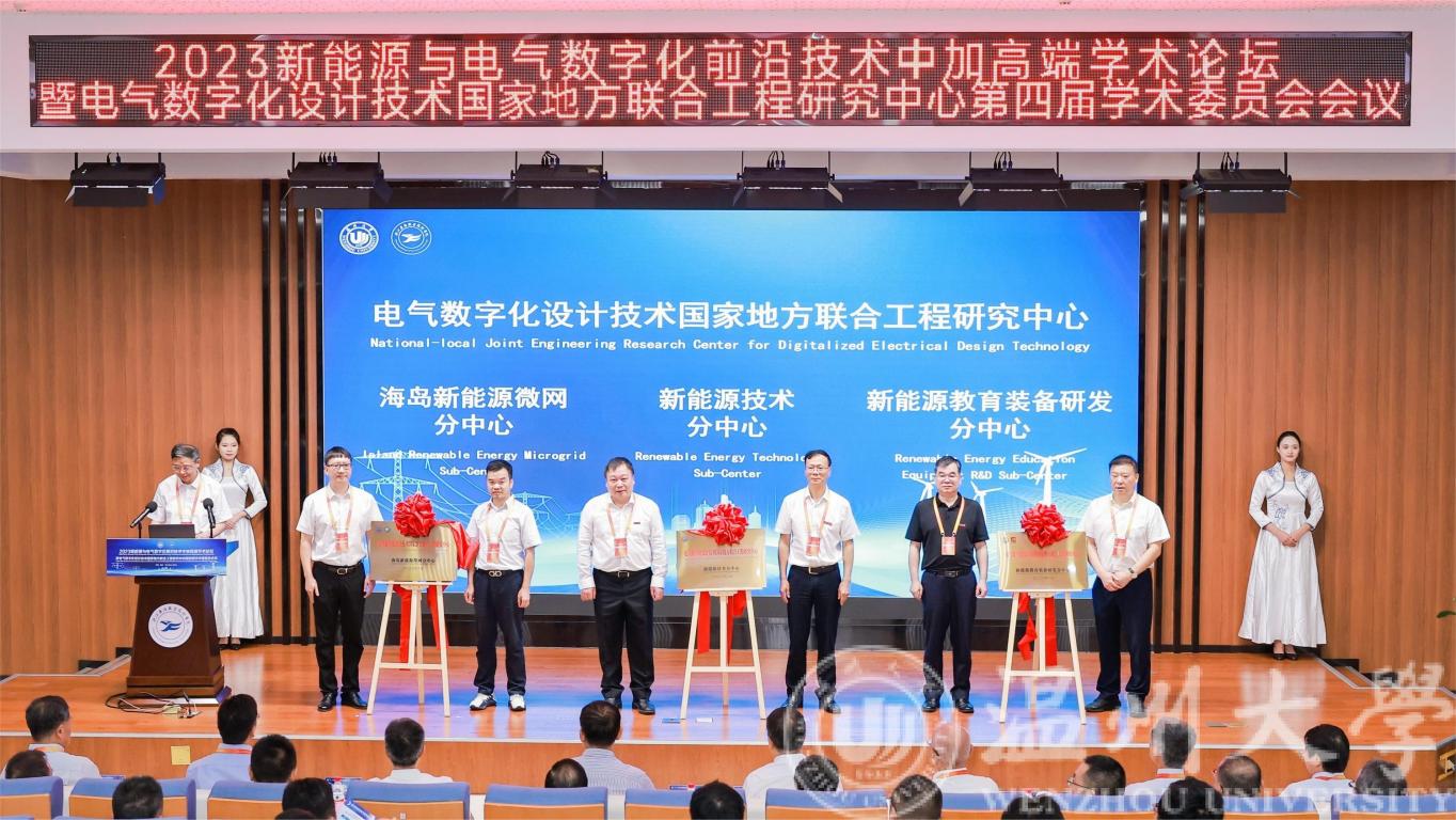 会议上宣布了电气数字化设计技术国家地方联合工程研究中心第四届学术委员会名单,还为电气数字化设计技术国家地方联合工程研究中心和落户在安防学院的新能源技术分中心、落户在国网平阳中心的海岛新能源微网分中心、落户在亚龙智能装备集团股份有限公司的新能源教育装备研发分中心等三个分中心揭牌。当天,由安防学院、3044永利集团联合新能源龙头企业创设的新能源行业产教融合共同体举行了启动仪式。
