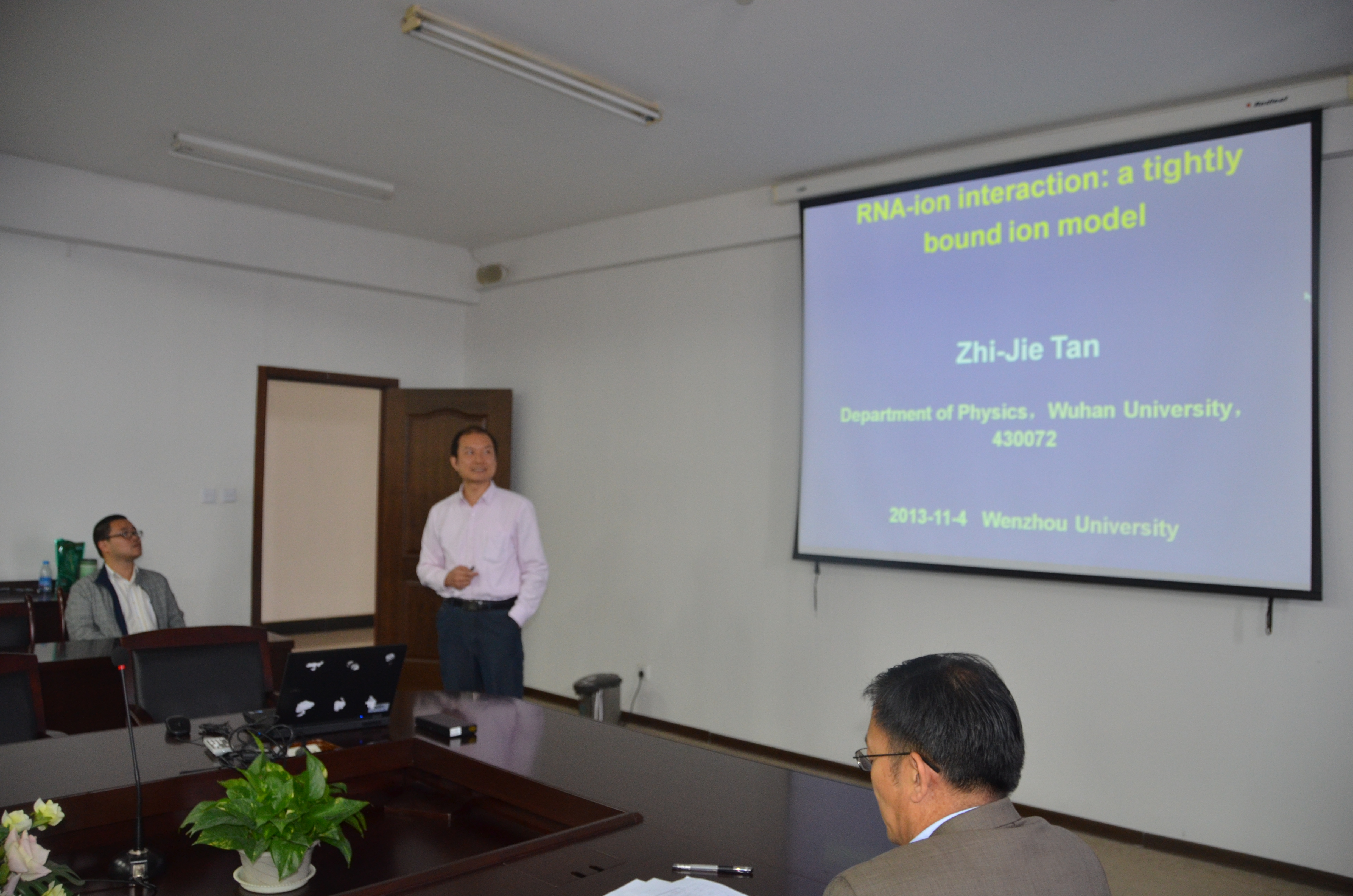 武汉大学物理科学与技术学院的谭志杰教授进行了关于统计物理与生物分子折叠问题的报告。报告中,谭教授向我们介绍了生物分子折叠、生物分子折叠中的统计物理基础及两者之间的相互关系。报告言简意赅,深入浅出,并对未来的研究提出了展望。