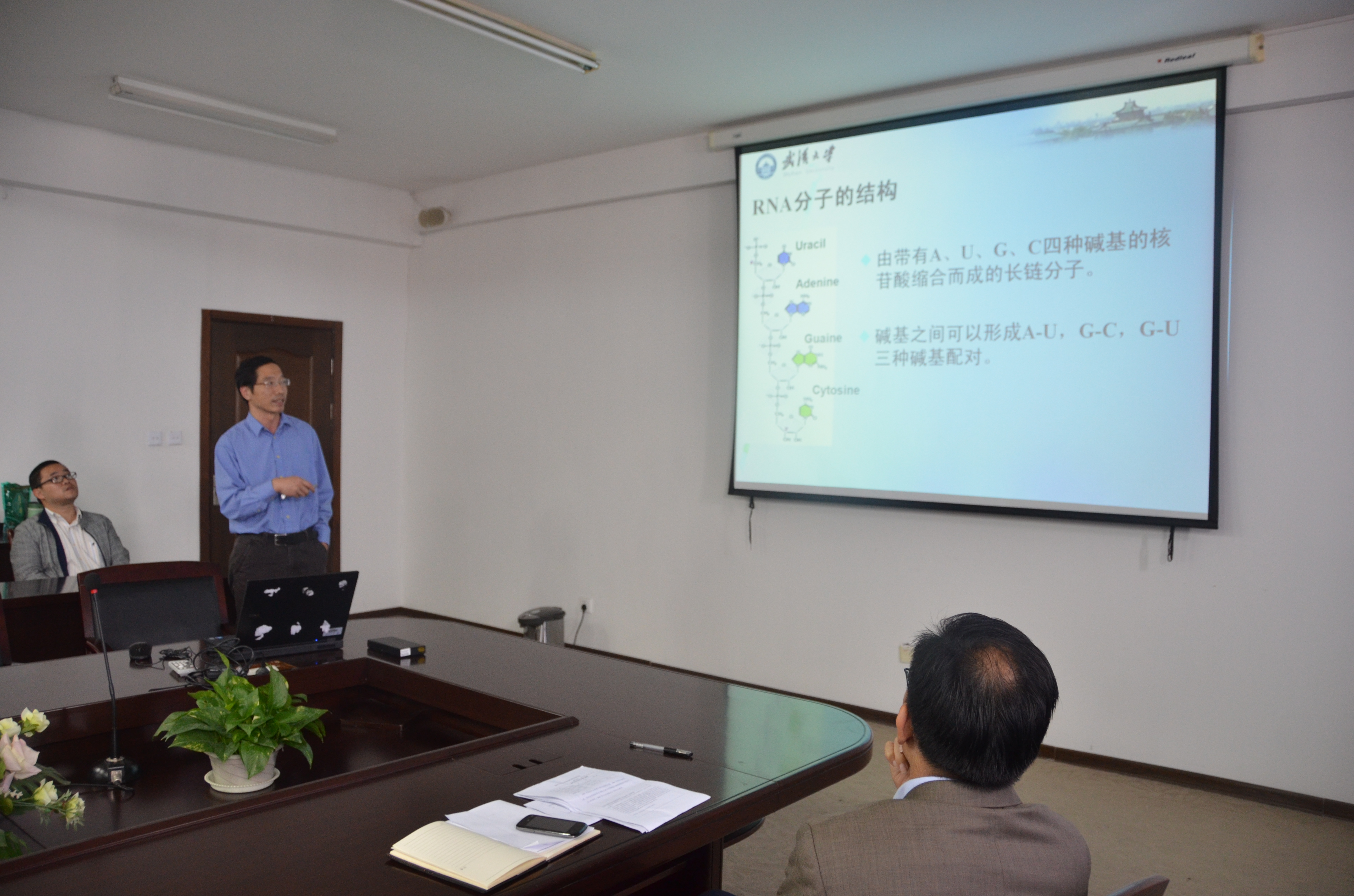 来自武汉大学物理科学与技术学院的张文炳教授进行了关于RNA动力学与RNA调控的报告。张教授围绕RNA分子的基本概念、自由能曲面与主方程的折叠动力学计算方法、核糖开关调控机制等三个主题展开报告内容,并以丁肝病毒酶为例讲解了折叠动力学的基本研究方法和研究结果,靶mRNA与siRNA结合动力学与siRNA效率相关方面的知识为公司生物大分子方面研究带来了新的思想和观念。