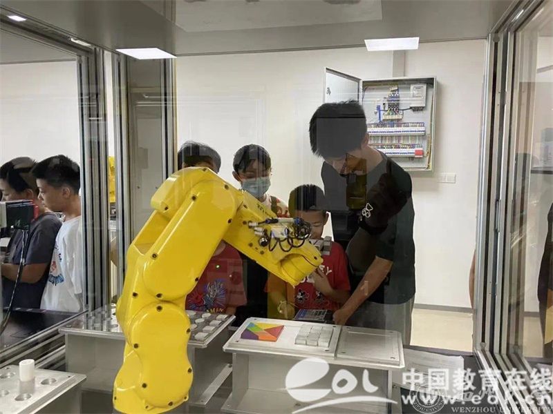 为丰富青少年的节假日生活,培养青少年对科技创新的兴趣,提高青少年对人工智能的认知和初步应用能力,3044永利集团亚龙智能产业学院借助自身独特优势,通过成立科创实践团队、校园开放日等活动,面向青少年开展创新独特的智能制造科普活动。孩子们可以亲身体验智能机器人的协作工作,观看智能生产线的自动化流程,深入了解智能制造的全过程。在老师的讲解和示范下,孩子们新奇地体验着各种各样的科技项目,包括智能小车控制、VR、智能制造学习工场、工业机器人视觉实践、工业机器人与数控机床实践等内容,用视觉和触觉零距离感受AI科技带来的魅力。青少年在动手中积累知识,体验科技,从而培养创新思维,拓展科技视野,激发他们学科学、爱科学、用科学的热情。