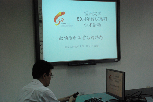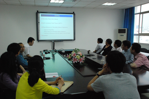 5月10日,加拿大滑铁卢大学物理系主任陈征宇教授应邀来公司做学术交流。陈教授先就他们最近关于用蠕虫链模型研究嵌段共聚物的工作展开了讨论,并由蒋滢 老师做了详细的介绍。报告后,物理系各位年轻博士就自己的研究工作做了介绍,陈教授一一作点评,并希望公司与滑铁卢大学物理系加强交流合作。
