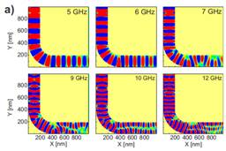 因尺寸限制效应,微纳磁波导可以传输量子化自旋波,形成波导模。对微纳磁波导中自旋波传输过程进行调控,可以进行信号处理,实现自旋波型磁基逻辑电 路。自旋波(磁振子)是磁系统中的低能激发态,传播速度快,调制方法多元,并且磁波导制备通常采用传统的半导体工艺,所以磁振子型逻辑电路具有能耗低、易 于微型化、与半导体技术兼容等优点(见ITRS 2009 edition: Emerging Research Devices. http://public.itrs.net)。在实际逻辑电路中,为了节省空间,基本元件的弯曲折叠非常普遍,因此对自旋波在弯曲磁波导中传输行为的 理解具有十分重要的意义。