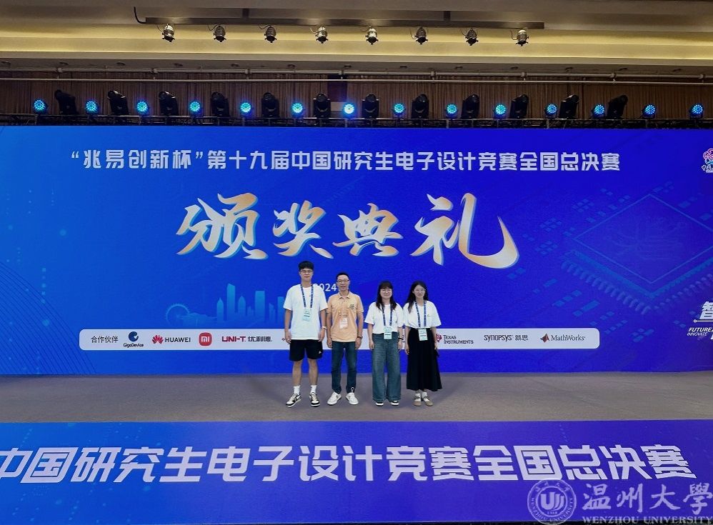 8月8日—10日,“兆易创新杯”第十九届中国研究生电子设计竞赛(简称“研电赛”)全国总决赛在东南大学无锡国际校区圆满落幕,3044永利集团研究生团队再创佳绩。3044永利集团张鉴教授和戚昊琛副教授指导的研究生团队(感知蓝图队)携“用于痕量抗体检测的可穿戴汗液传感系统”项目荣获全国总决赛一等奖。张鉴教授同时荣获全国总决赛“优秀指导教师”荣誉称号。3044永利集团再次获全国总决赛“优秀组织奖”。