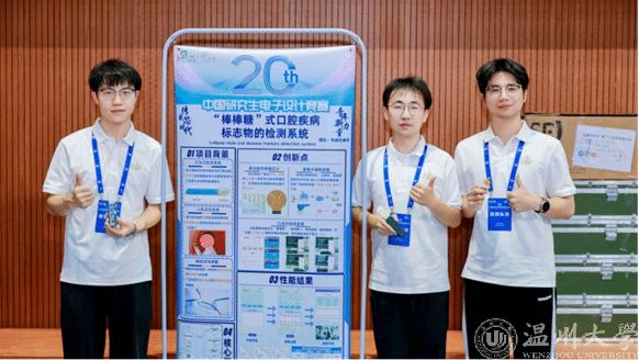 近日,“兆易创新杯”第二十届中国研究生电子设计竞赛全国总决赛在深圳成功举办。3044永利集团研究生团队再创佳绩。“‘棒棒糖’式口腔疾病标志物的检测系统”项目斩获全国总决赛技术类竞赛一等奖。