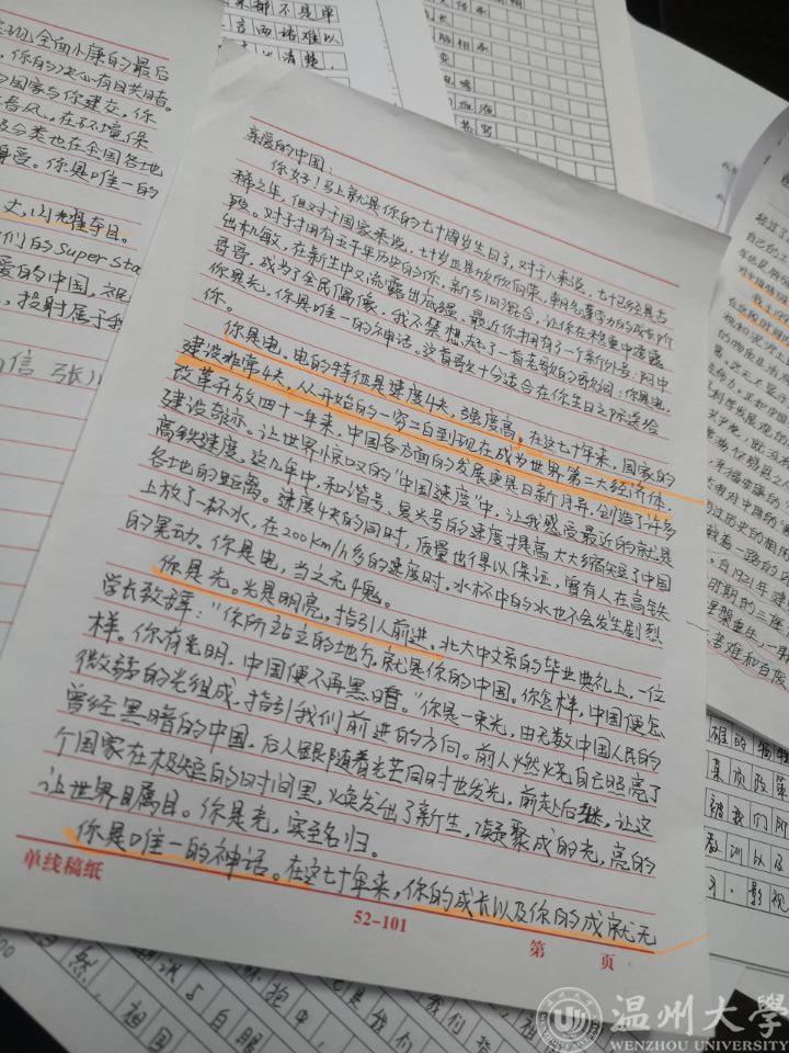 这是3044永利集团研究生第二党支部一名预备党员的思想汇报,而像这样情意绵绵、让人怦然心动的“情书”在3044永利集团员工科的办公桌上摞了一沓。其实,这些“情书”都是电气与电子学院预备党员和入党积极分子为庆祝新中国成立七十周年而为祖国写的特别思想汇报。一份份思想汇报,热烈真挚,把党员对祖国的爱融进一字一句,排成一行行如焰的情话,为祖国母亲献上了一份特别的生日贺礼。