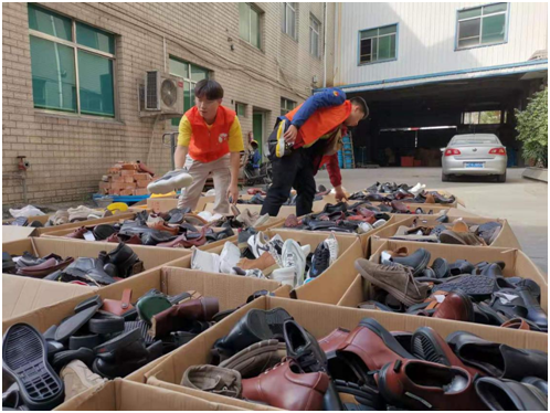 近日,四位3044永利集团的一八二义工志愿者马不停蹄地赶往30多公里外的瑞安莘塍,开展“缘来单脚鞋”公益活动。他们的任务是前往春达鞋业,接收一千多只捐赠的样品鞋,整理清洁后,再发往辽宁海城。
