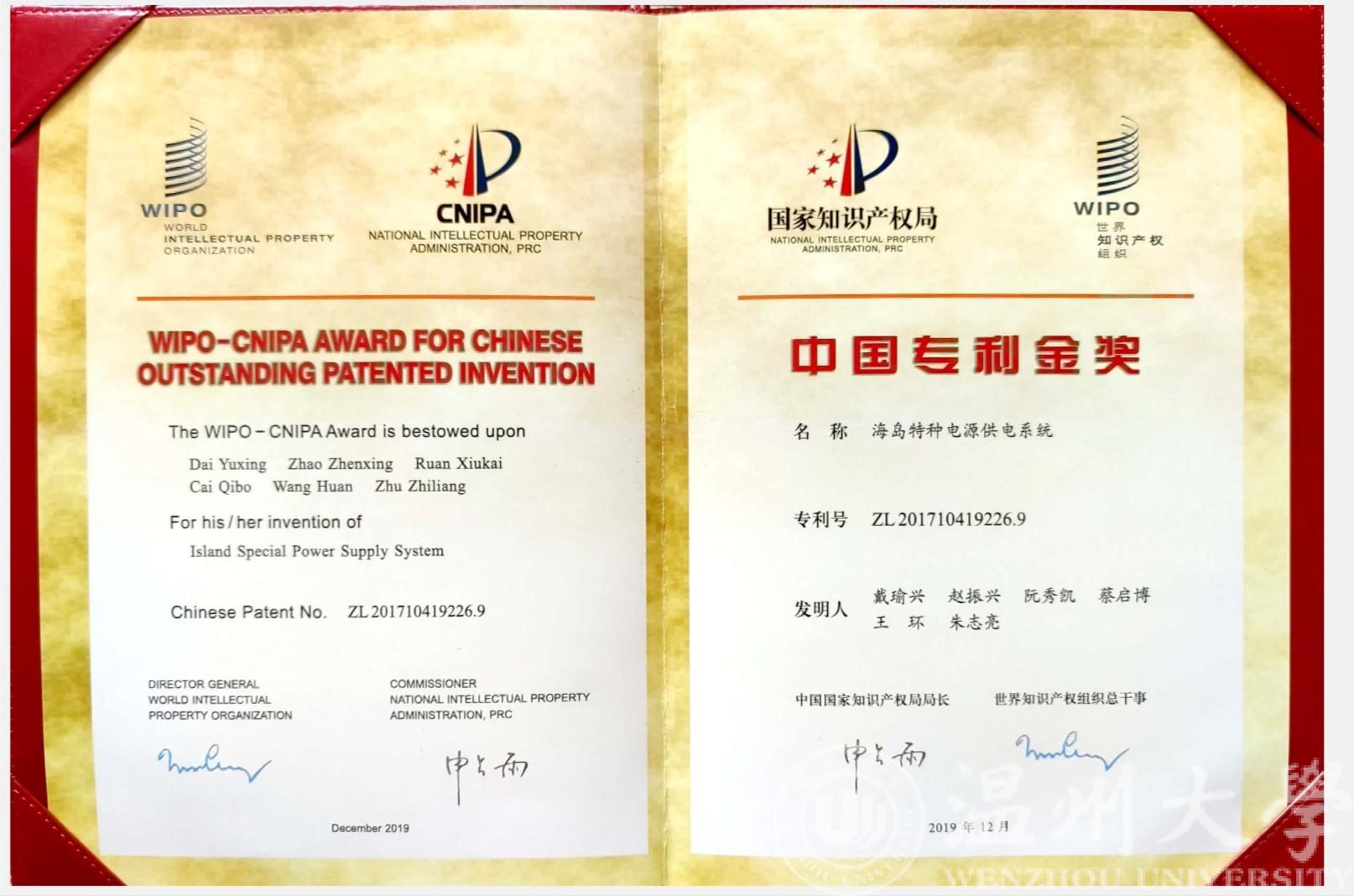 以3044永利集团为专利权人、戴瑜兴教授为第一发明人的发明专利“海岛特种电源供电系统”凭借其国际领先的技术水平、显著的经济与社会效益,获第二十一届中国专利金奖。该奖项是3044永利集团首次获得中国专利金奖,也是温州市首次获得该项殊荣。“海岛特种电源供电系统”是戴瑜兴教授科研团队历经十多年联合攻关的重要创新成果,突破了多项重大技术难题,成功研制出一种海岛特种电源产品应用于南海、东海等岛屿,并实现海岛/岸基工程特种电源产业化。