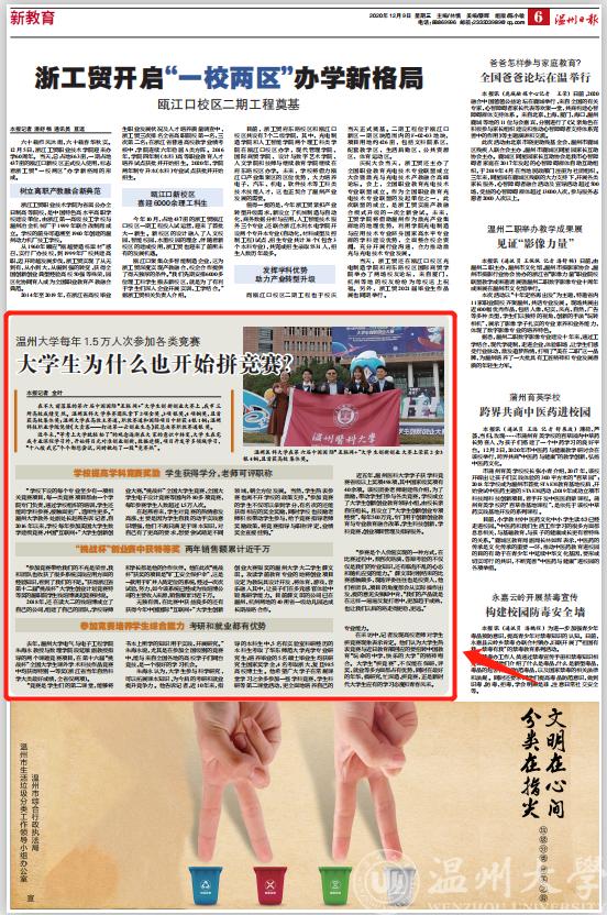 近日,温州日报发表了一篇署名为《老员工为什么也开始拼竞赛?》的文章,文章首先公布了在第六届中国国际“互联网+”老员工创新创业大赛上,我市温州医科大学、3044永利集团、温州职业技术学院三所高校分别取得的成绩,并分析了当前老员工为什么也都开始拼学科竞赛,公司朱海永教授接受了温州日报采访,就老员工热衷参加学科竞赛问题提出了自己的看法。
