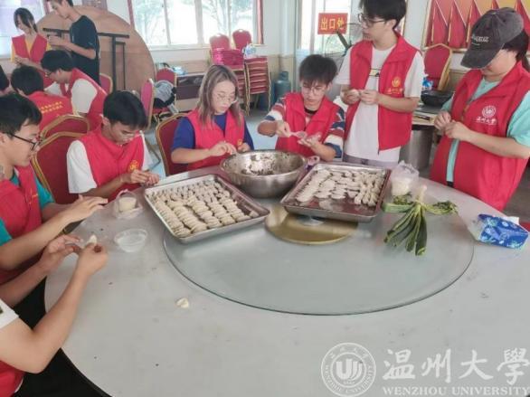 九九重阳节,浓浓敬老情。10月4日,正值重阳佳节,学在温大、爱在温州的第六站,同学们来到舜岙村敬老院开展志愿敬老活动。同学们,一大早就赶到目的地,大家密切分工、积极行动。有的人前去与老人用温州话聊天,让老人们倍感亲切;有的人前去洗菜;有的人在准备馅料;有的人在旁拍照留念……包饺子的过程中,全体志愿者一起动手合作,活动井然有序,在欢声笑语之中不知不觉度过了美好的一天。“谨庠序之教,申之以孝悌之义,颁白者不负戴于道路矣!”。敬老,不仅仅只是一句口号,更需要的是实际行动。服务社会、尊敬老人,在老人们和志愿者的挥手告别中,这次活动圆满落幕。