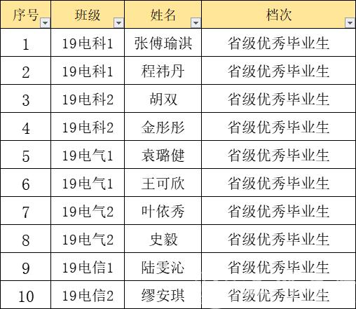 根据《3044永利集团优秀毕业生评选办法》(温大行政发[2020]104号),按照学校初次分配名额,根据前期进行2023届省级优秀毕业生的预评选,推荐19电科1张傅瑜淇 等10名同学获得省级优秀毕业生荣誉称号,现将名单进行公示。