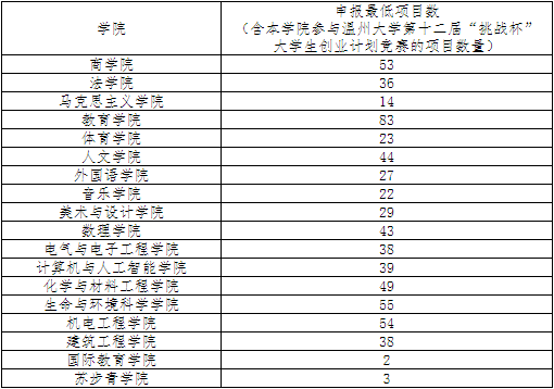 根据各学院符合资格人数,申报最低项目数如下表所示: