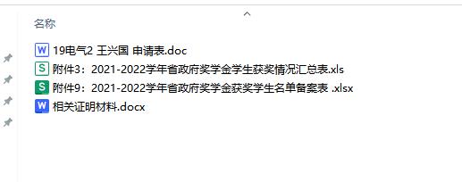 可推荐、直接当选(2个表+证明材料):电子材料 附件8:2022-2023学年省政府奖学金申请表.doc (重命名 班级+申请表)+附件9:2022-2023学年省政府奖学金获奖员工名单备案表.xlsx+附件8填写奖项、论文、课题、专利等的证明材料(注意,论文需要已经发表,录用不算;科研课题需提供结项证书)