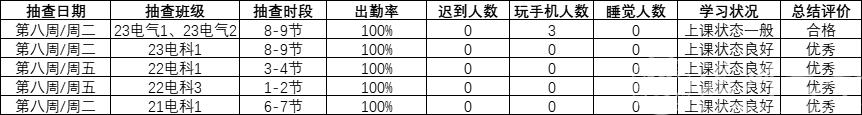 表1 2023.10.30-2023.11.5学院学风检查情况