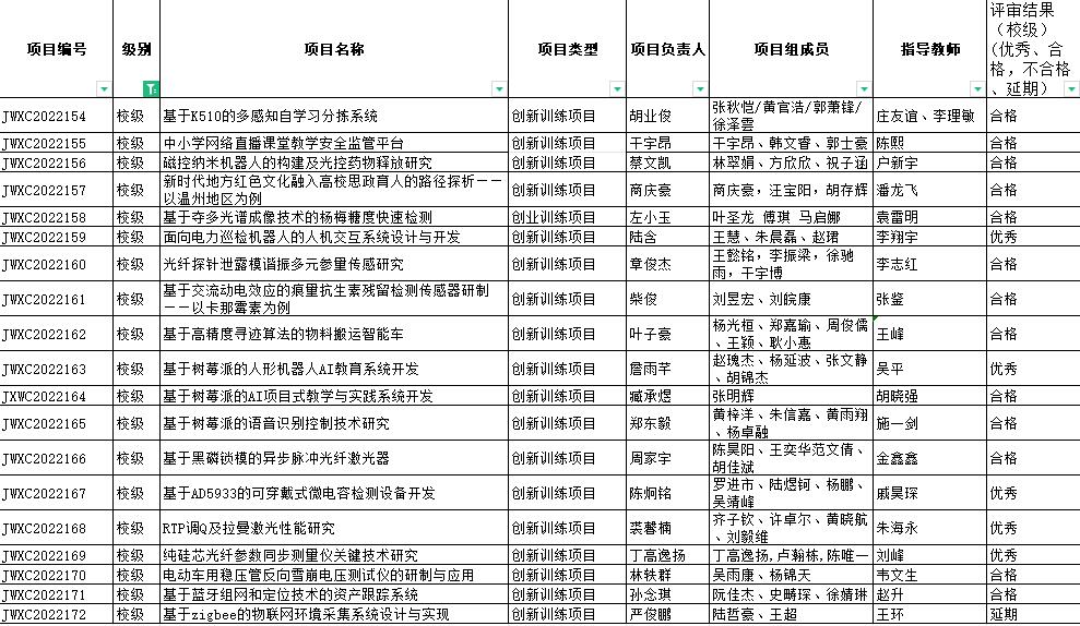 根据教务处的通知,公司组织了2022年立项的校级老员工创新创业训练计划项目结题的审核,现将检查结果公示如下,公示期从即日起至11月24日,如果有问题,请联系张老师86689020。