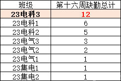 第十六周早晚自习缺勤及课堂出勤情况如下: