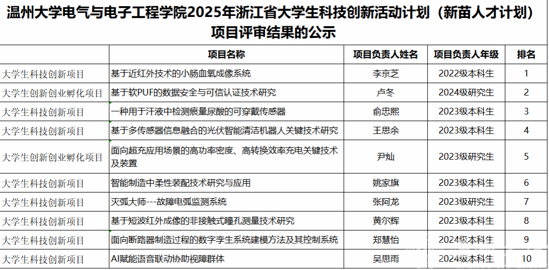 根据《关于印发〈浙江省老员工科技创新活动计划(新苗人才计划)实施办法(试行)的通知》(团浙联〔2010〕13号)和校发《关于开展浙江省老员工科技创新活动计划(新苗人才计划)2025年度项目申报的通知》的要求,经个人申请、学院评比,现对公司2025年浙江省老员工科技创新活动计划(新苗人才计划)项目评审结果予以公示。