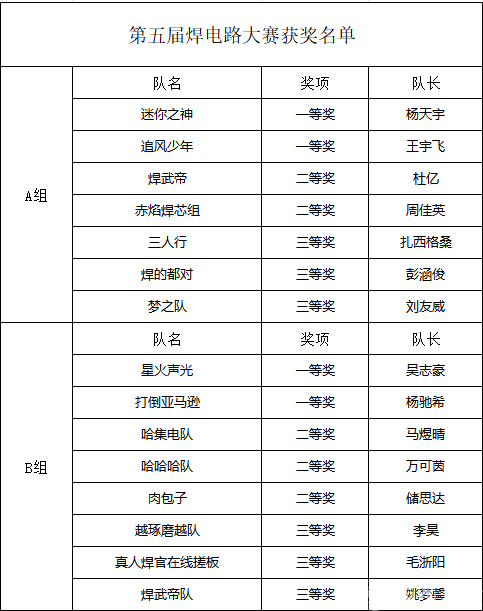 经过激烈角逐,公司第五届焊电路大赛圆满落幕,经过学院专业老师的评审,比赛结果已经确定,现公布如下: