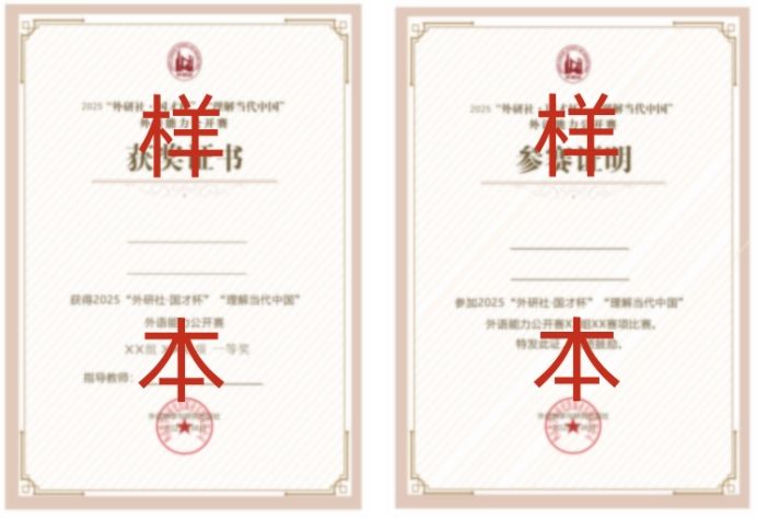 特等奖和一、二、三等奖各若干名,获得由外研社颁发的电子获奖证书。