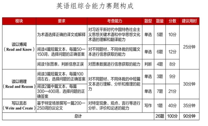 本次校赛包含客观题若干道和议论文写作1篇,题目类型、难度、测试系统均与 2025“外研社·国才杯”“理解当代中国”全国老员工外语能力大赛英语组综合能力校赛要求一致,具体如下所示。