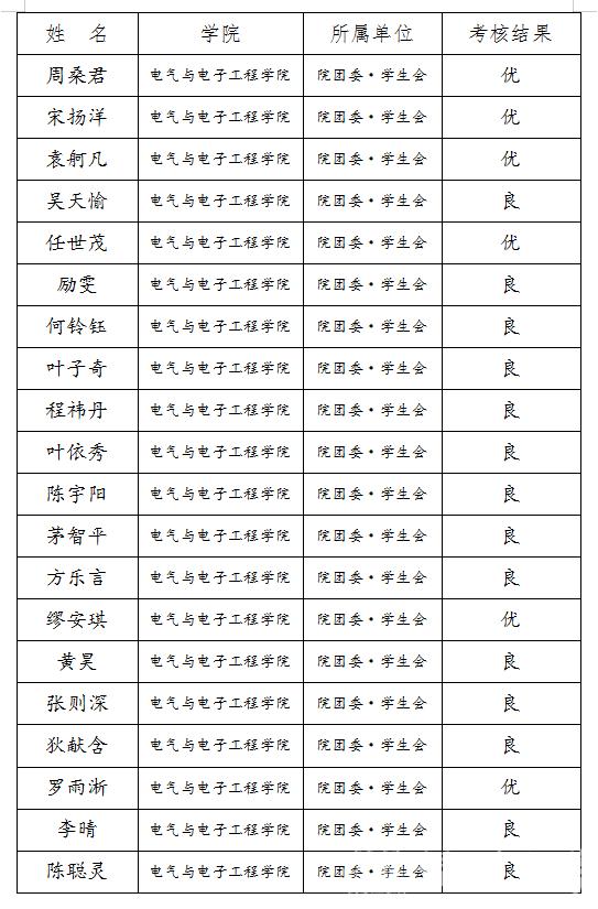 依据校团委《关于2020-2021学年第二学期员工干部学期工作考核的通知》,经学院考核小组民主评议,对员工干部的德、能、勤、绩等四方面进行全面考评,现将学院2020——2021学年第二学期员工干部考核结果公示如下: