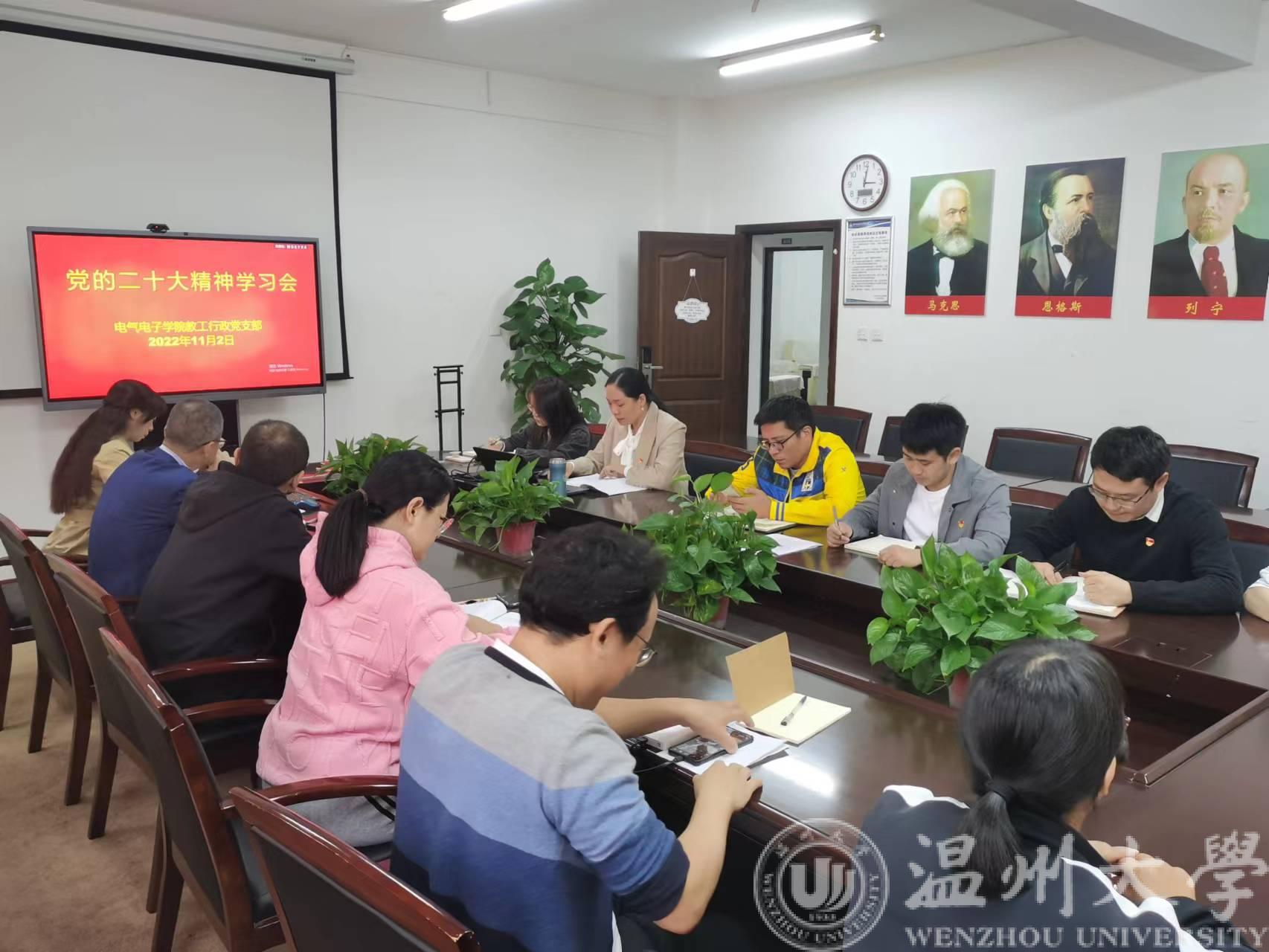 11月2日,电气系教工党支部在1B411开展学习领会党的二十大精神,支部书记张正江提出要坚持全面准确,深入理解内涵,精准把握外延。支部书记张正江着重从九个方面进行了深入宣传学习。本次支部学习宣传贯彻党的二十大精神,要立足我国改革发展、党的建设实际,坚持学思用贯通、知信行统一,把党的二十大精神落实到我们日常学科与专业建设发展各方面,做好今年各项工作和安排好今后工作之中。支部书记张正江同志要求广大党员同志要坚持贴近实际、尊重规律,紧密联系广大党员干部群众的新期待,努力增强学习宣传贯彻党的二十大精神的吸引力感染力和针对性实效性。