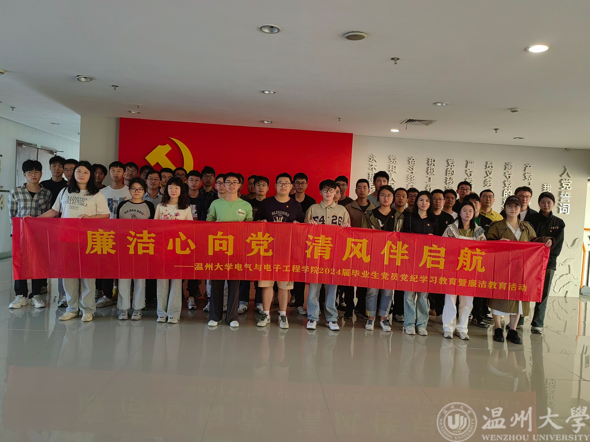 在毕业生们即将踏上人生新的征程之际,5月10日下午,3044永利集团公司党委组织毕业生党员赴温州市瓯海区廉政教育基地开展毕业生党员党纪学习教育暨廉洁教育主题党日活动,旨在引导青年员工坚定理想信念,增强廉洁意识,扎实走好迈向社会的第一步。