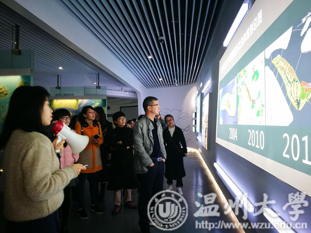经过四十分钟的车程,教职工党员与研究生党员来到了温州瓯江口产业集聚区规划展示馆。听取了讲解人员的介绍,大家了解到温州市瓯江口新区作为14个省级产业集聚区之一率先通过省人民政府审批,获准设立温州市瓯江口产业集聚,这也是国家“一带一路”宏观战略规划中的“21世纪海上丝绸之路”经济带重要区域之一。通过滩涂围垦造地,连接灵昆岛和霓屿岛,建设约133平方公里的瓯江口新区。瓯江口区域建港条件优越,岸线长达30多公里,可建万吨级以上泊位深水线15公里。瓯江口海、陆、空交通联动,形成“两纵两横三连一绕”的高速公路和“一港七区”的温州港密集交错。瓯江口产业集聚区创新产业发展形态,紧扣产城融合主题,先谋而后定优化产业发展,在不久的未来必定引领温州的发展。